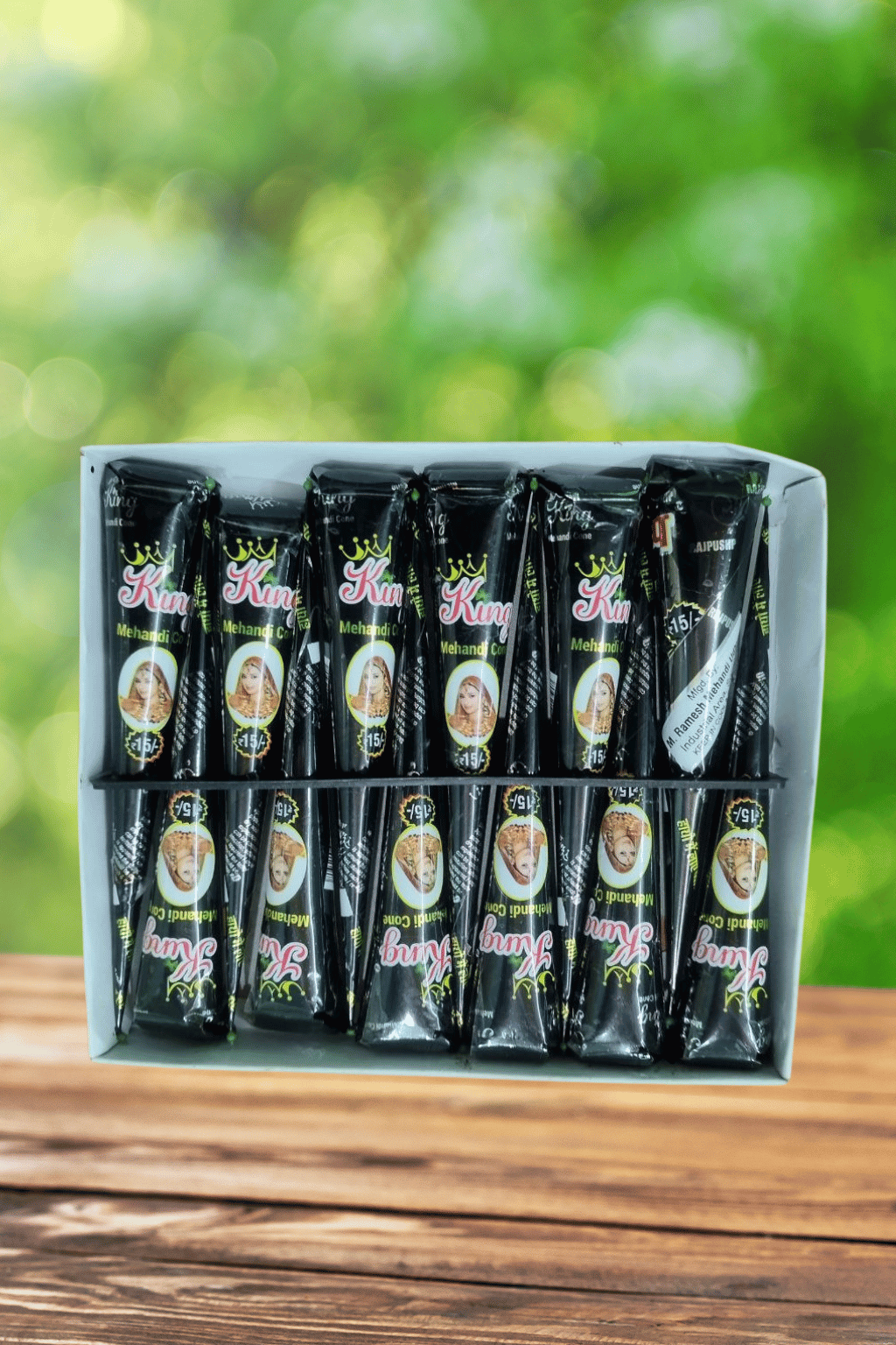 The King Mehendi Cone by Vrinda Herbals is specially crafted for those who desire royal richness and long-lasting color in every design. Made from the finest Sojat henna leaves, King Mehendi Cone delivers a deep, dark stain with a smooth application, making it the perfect choice for both personal use and professional mehendi artists.