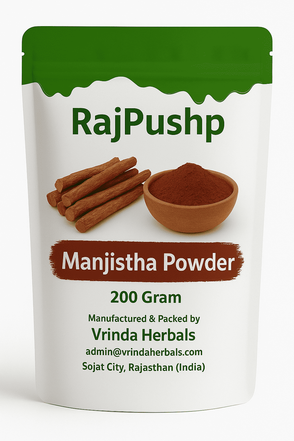 Vrinda Herbals Manjistha Powder is made from the roots of Rubia cordifolia, commonly known as Manjistha. In Ayurveda, it is regarded as one of the best blood purifiers and lymphatic detoxifiers, making it highly effective for skin health, liver support, and overall rejuvenation.